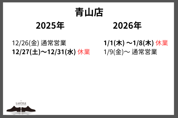 年末年始の広島店・青山店の店頭の営業は上記の通りとなります。